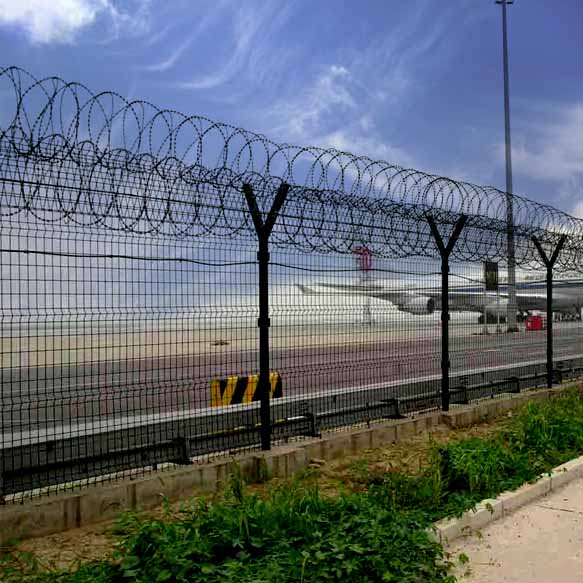 機(jī)場圍界網(wǎng)是安全防盜連接件和熱鍍鋅刀片刺籠組成是強(qiáng)度和安全防御性級(jí)別很高的隔離柵產(chǎn)品。近年來,機(jī)場圍欄網(wǎng)被廣泛應(yīng)用在機(jī)