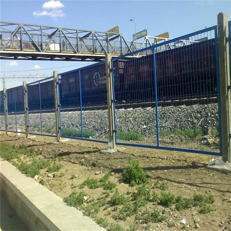3、鐵路護欄網(wǎng)的規(guī)格材質(zhì):195低碳冷拔鋼絲。 4、護欄的立柱采用混凝土澆筑件,工程造價低。