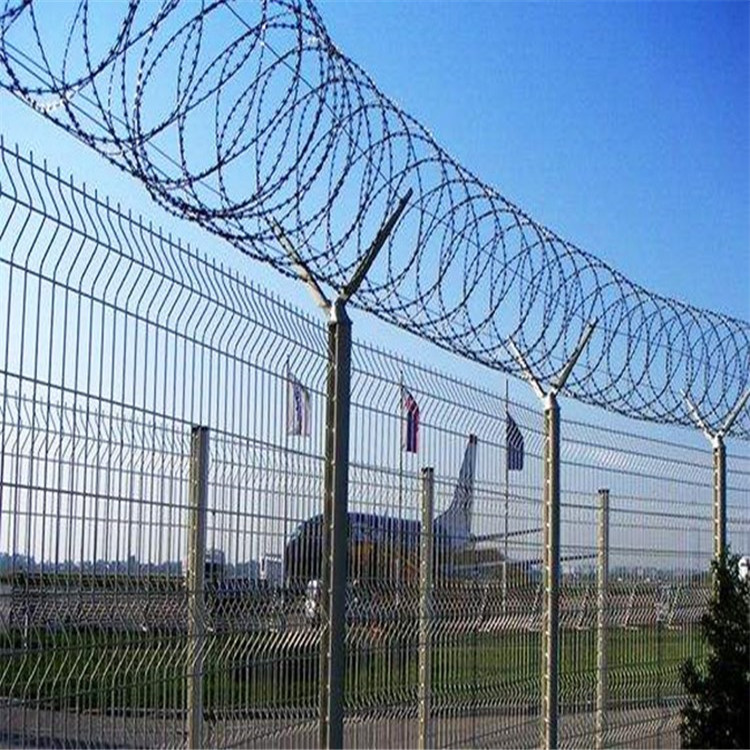飛機圍界是做什么的?飛機圍界是機場邊界的重要保護措施,是為防止人為破壞,保證機場安全,讓飛機順利起飛的護欄產品,這種護欄網表面采用電鍍、熱鍍、浸塑、噴塑等處理方式,實現顏色多樣多化,在連接方式上采用特制SBS緊扣件,防止人為破壞拆卸,又在網片上加裝橫向四道折彎回強筋,使整體既美觀又實用。,機場圍界根據結構分類,可以分為菱形網圍界和方孔鋼筋網圍界,區(qū)別就是二者的生產工藝不同,一種是用勾花網用作網板或斜方孔網片用作網板,另外一種是用鋼筋網片或電焊網片用作網板來制作機場圍界