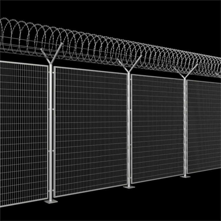 核電站圍欄網(wǎng)的-電廠防護網(wǎng)廠家是一款用于電廠的護欄網(wǎng)產(chǎn)品,其安全防護級別很高,也經(jīng)常用于監(jiān)獄,機場等等高安全防護場所。是由V型支架立柱,型焊接片網(wǎng),安全防盜連接件和熱鍍鋅蛇腹型刀刺網(wǎng)組成。具有安全性高、防攀爬能力好,網(wǎng)片連接方式采用特制SBS緊扣件,有效防止人為的破壞性拆卸,