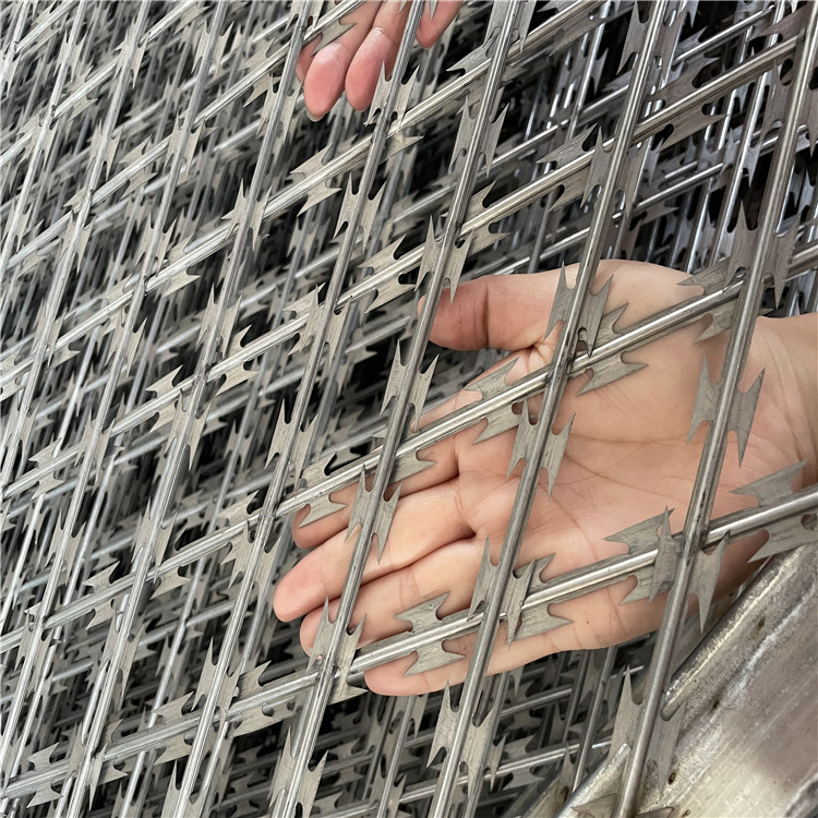 刀片刺網(wǎng)是用直條的刀片刺繩直接焊接而成的網(wǎng)片,焊接成網(wǎng)片的刀片刺網(wǎng)擁有了小孔且不可攀爬的優(yōu)點(diǎn),同時(shí)在防護(hù)高度上改善了傳統(tǒng)的螺旋形刀片刺繩,焊接成片刺網(wǎng)尺寸可高達(dá)2米,長(zhǎng)度不限,現(xiàn)在大部分監(jiān)獄,看守所,派出所,機(jī)場(chǎng),重要廠區(qū)等改進(jìn)了原來(lái)的防護(hù)形式,越來(lái)越多的開(kāi)始采用焊接式刀片刺網(wǎng)。