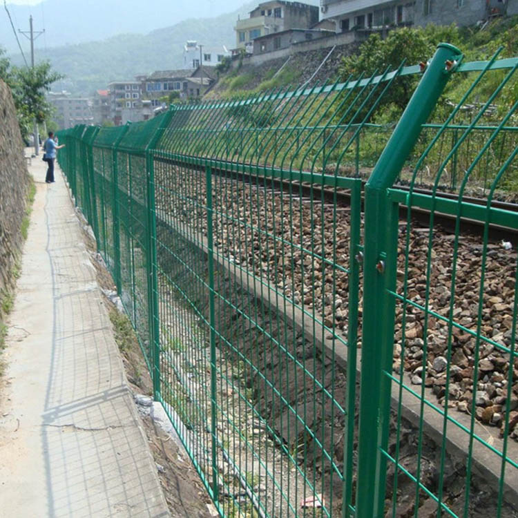 鐵路護(hù)欄網(wǎng)又叫鐵路隔離柵是重要的交通基礎(chǔ)設(shè)施,所以在安全性與實(shí)用性的要求上更加的嚴(yán)格。整個(gè)鐵路封閉網(wǎng)采用優(yōu)質(zhì)低碳鋼絲或不銹鋼絲編焊而成,其大致結(jié)構(gòu)可分為立柱+邊框,連接方式可以通過連接件連接,也可以用網(wǎng)片直接與立柱卡接、螺栓連接和連接件鉚接,角度可任意調(diào)整。