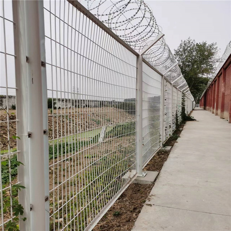 監(jiān)獄隔離網(wǎng)主要采用高強(qiáng)度的刀片刺網(wǎng)與普通防護(hù)網(wǎng)的結(jié)合,由Y型立柱、安全防盜連接件等組成。