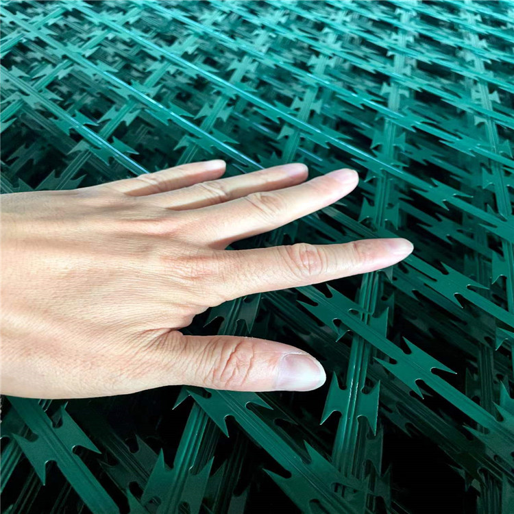 刀片鋼網(wǎng)墻,顧名思義,是由刀片和鋼網(wǎng)組成的墻體。刀片采用優(yōu)質(zhì)鋼材制成,經(jīng)過精密的加工和打磨,呈現(xiàn)出鋒利的刃口。而鋼網(wǎng)則是由細(xì)密的鋼絲編織而成,堅(jiān)固耐用,能夠有效防止外界物體的侵入。刀片與鋼網(wǎng)緊密結(jié)合,形成了一道難以逾越的屏障。
