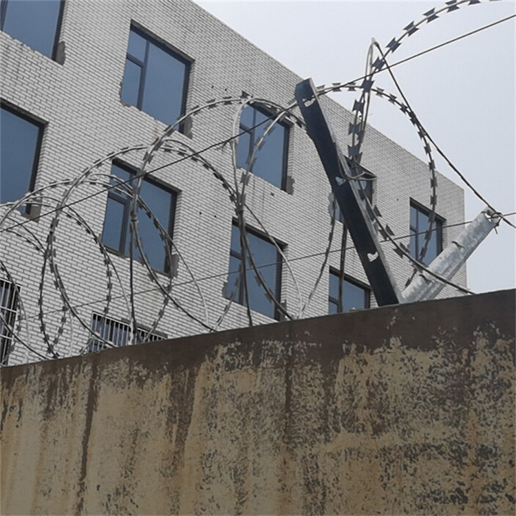 是一種近年發(fā)展起來的防護(hù)、隔離能力較強(qiáng)的新型防護(hù)網(wǎng)產(chǎn)品。它采用鋼板沖壓成型包附于鋼絲(筋絲)之上,由銳利尖角鍍鋅鋼板或不銹鋼薄板做刀片,高張力鋼絲做芯線組合而成的。鋒利的刀型刺由雙線扣裝后成蛇腹?fàn)?,既美觀又讓人不寒而粟。起到了很好的阻嚇作用。該產(chǎn)品具有美觀、防阻效果好、施工便利等優(yōu)點(diǎn)。