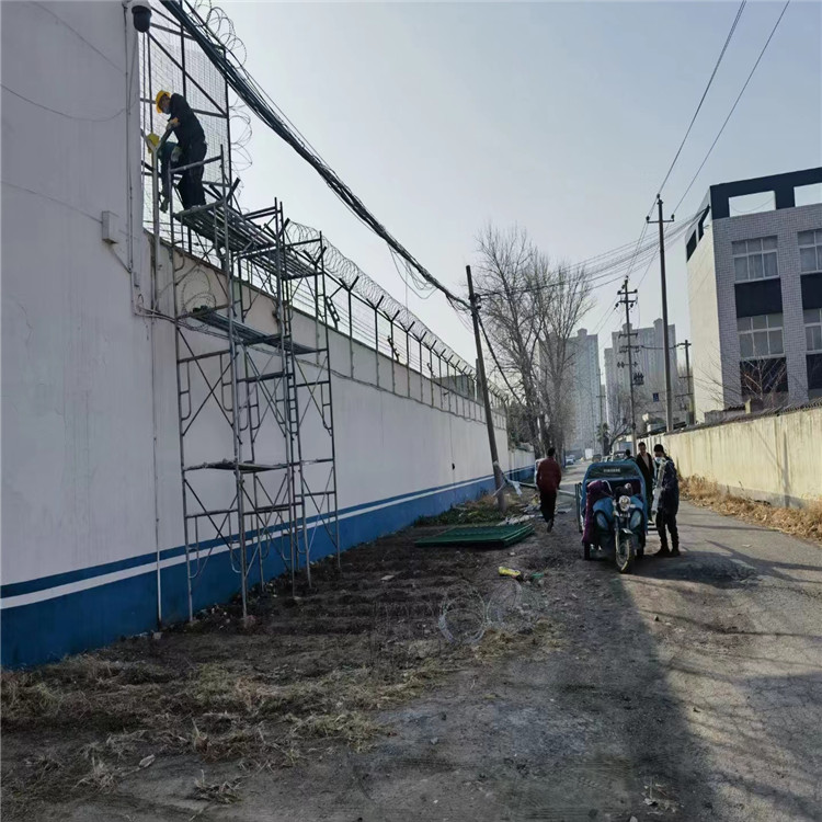 全防護設施,由焊接鋼網(wǎng)加蛇腹形刀刺網(wǎng)組合而成。監(jiān)獄防攀爬護欄網(wǎng)具有結(jié)構(gòu)新穎、堅固緊密、網(wǎng)面平整、 網(wǎng)孔均勻、鋒銳利、防攀爬、抗腐蝕性強等特點。建設于監(jiān)獄的內(nèi)外墻地面及高墻之上, 網(wǎng)墻內(nèi)側(cè)或頂部加裝蛇腹形刀刺網(wǎng),形成-道高不可攀、難以逾越的隔離障礙。配合高壓打擊電網(wǎng)、各種監(jiān)控報警設備確保監(jiān)獄安全萬無一失。
