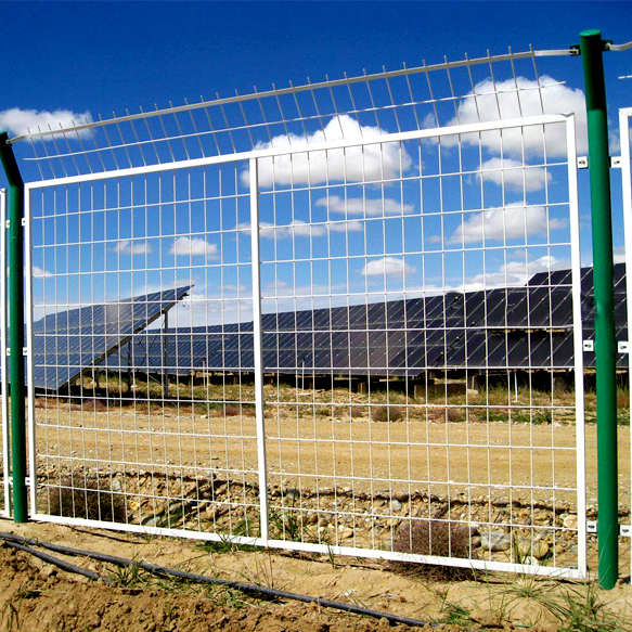 光伏電站圍網(wǎng)是一種新型的圍網(wǎng),選用優(yōu)質(zhì)低碳鋼絲作為原材料,表面浸塑處理,具有無需模具、加工成本低、成型容易、日久抗腐蝕、抗紫外線、不怕雨淋可加工各種外形的特點(diǎn)被廣范使用。是專門為光伏電站設(shè)計(jì)的防護(hù)產(chǎn)品,應(yīng)用在光伏電站各個(gè)區(qū)域的防護(hù)和隔離.它有效防止了變電站內(nèi)外的人身安全和變電器等設(shè)備的防盜,是變電站的防護(hù)新產(chǎn)品。具有較長的使用年限。最常見的形式主要就是邊框隔離防護(hù)網(wǎng).