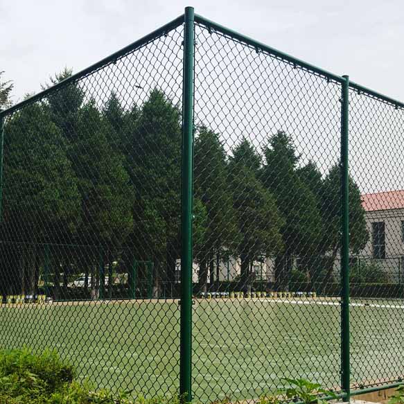 球場圍欄采用進(jìn)口PVC材質(zhì)包塑鐵絲網(wǎng)做網(wǎng)球場的圍網(wǎng),既可節(jié)省每年為普通鐵絲重新油漆的費(fèi)用