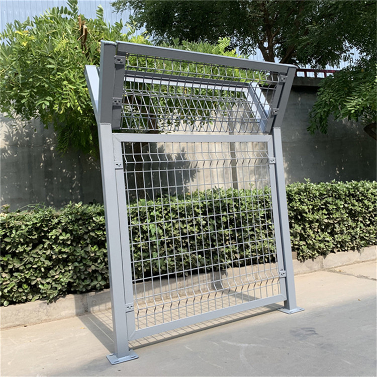 機場護欄網網孔:50mmX100mm,50mmX200mm。網片中帶有V型加強筋,可以增加圍網的防沖擊力。立柱為60X60的矩形鋼,頂端焊有V型之架。或者采用70mmX100mm的掛式連接立柱。