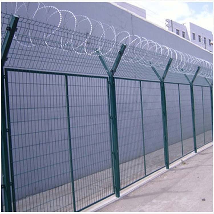 監(jiān)獄護(hù)欄網(wǎng)專門為監(jiān)獄等隔離性級(jí)細(xì)的廠所設(shè)計(jì),外型嚴(yán)律,防護(hù)性理,監(jiān)獄防網(wǎng)又稱監(jiān)獄護(hù)欄網(wǎng)或監(jiān)獄隔離柵,主要是采用高強(qiáng)的刀片與普通防護(hù)的結(jié)合,由支架立往加強(qiáng)型焊接片網(wǎng)安全防盜連接件和刀片組成刀片刺網(wǎng)是種新型防護(hù)網(wǎng),由銳利尖角鑣鋅鋼板或不銹鋼薄板做刀片,鋼絲做芯線組合而成的防護(hù)器材