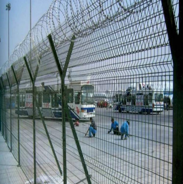 其機場護欄網(wǎng)造型美觀、花色多樣,既起到圍欄作用,又起到美化作用。機場護欄網(wǎng)可以采用電鍍、熱鍍、噴塑、浸塑等防腐形式,具有很好的抗老化、抗曬、耐候等特點。近年來,被廣泛應用在機場,軍事基地等高安全場所。我廠出產(chǎn)的護欄網(wǎng)可以采用電鍍、熱鍍、噴塑、浸塑等防腐形式,具有很好的抗老化、抗曬、耐候等特點。艾瑞可以根據(jù)您的需要定作各種規(guī)格尺寸的機場護欄網(wǎng)產(chǎn)品:機場護欄網(wǎng)因為具有安全性高、防攀爬能力好,網(wǎng)片連接方式采用特制SBS緊扣件,有效防止人為的破壞性拆卸,橫向四道折彎加強筋,使網(wǎng)面強度明顯增加。該產(chǎn)品堅固耐用、價格中等偏低,適合大面積采用。艾瑞可以根據(jù)用戶需要定作各種規(guī)格尺寸的機場用護欄網(wǎng)產(chǎn)品:機場護欄網(wǎng)稱作“機場圍欄”、“機場隔離柵“、“機場圍網(wǎng)”,它是一種專i ]用于機場外圍的安全防護使用的護欄產(chǎn)品。機場圍欄由低碳鋼絲焊接而成的網(wǎng)片、立柱、刺鐵絲可選)、斜撐向選)連接而成。用途:主要合用于機場附近的隔離防護,美化及防翻越工程