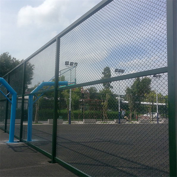 選用優(yōu)質(zhì)低碳鋼絲。 編織方法: 編織焊接而成。 規(guī)格: 1. 包塑絲經(jīng):3.8mm ; 2. 網(wǎng)孔:50mm X 50mm; 3. 尺寸:3000mm X 4000mm; 4. 立柱:60/2.5mm; 5. 橫柱:48/2mm; 防腐處理: 電鍍、熱鍍、噴塑、浸塑處。 優(yōu)點(diǎn): 具有防腐、防老化、防曬、色彩鮮亮、網(wǎng)面平整,強(qiáng)力張緊,不易受外力撞擊變形、現(xiàn)場(chǎng)施工安裝、靈活性強(qiáng)(可根據(jù)現(xiàn)場(chǎng)要求隨時(shí)調(diào)整造型和尺寸)。 可選顏色: 藍(lán)色、綠色、黃色、白色等。